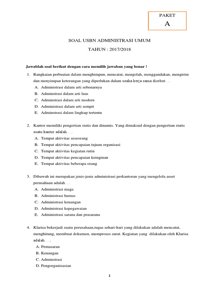 Soal Usbn Adm Umum Paket A Pdf from imgv2-2-f.scribdassets.com Check spelling or type a new query. Maybe you would like to learn more about one of these? We did not find results for: